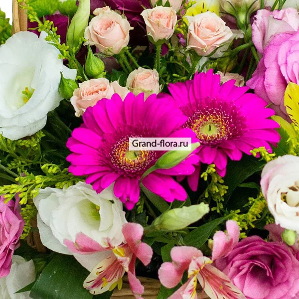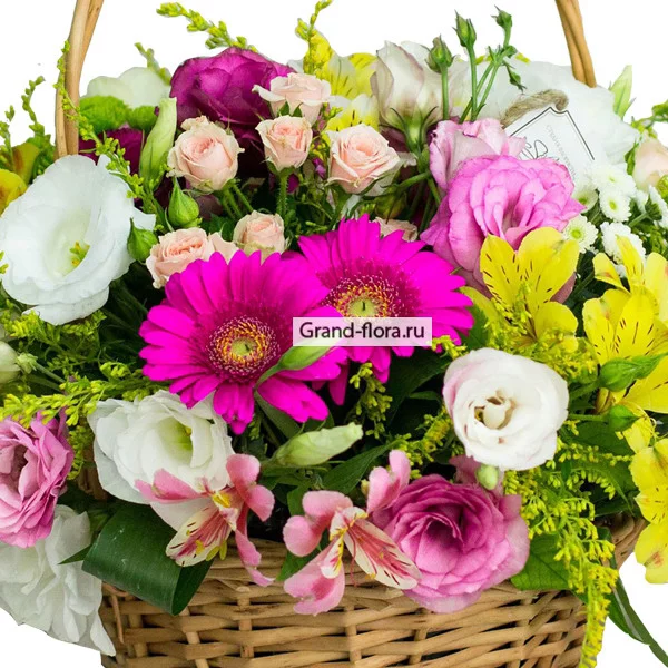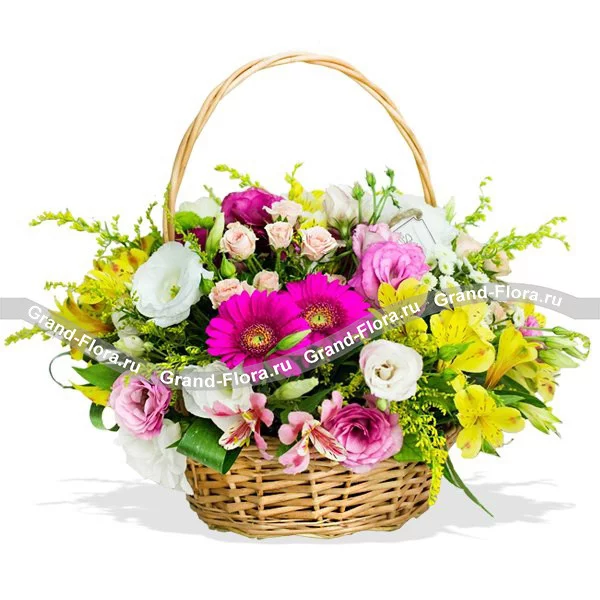 Данная корзина создает впечатление будто вы летним, солнечным утром, прогуливаясь по полям, собрали букет свежих цветов, что бы покорить этот мир и удивить человека, которому предназначенно это цветочное чудо.Яркая и контрастная композиция в корзине, выполненная из свежих разнообразных цветов, сделает неожиданный подарок приятным и будет радовать глаз еще долгое время.